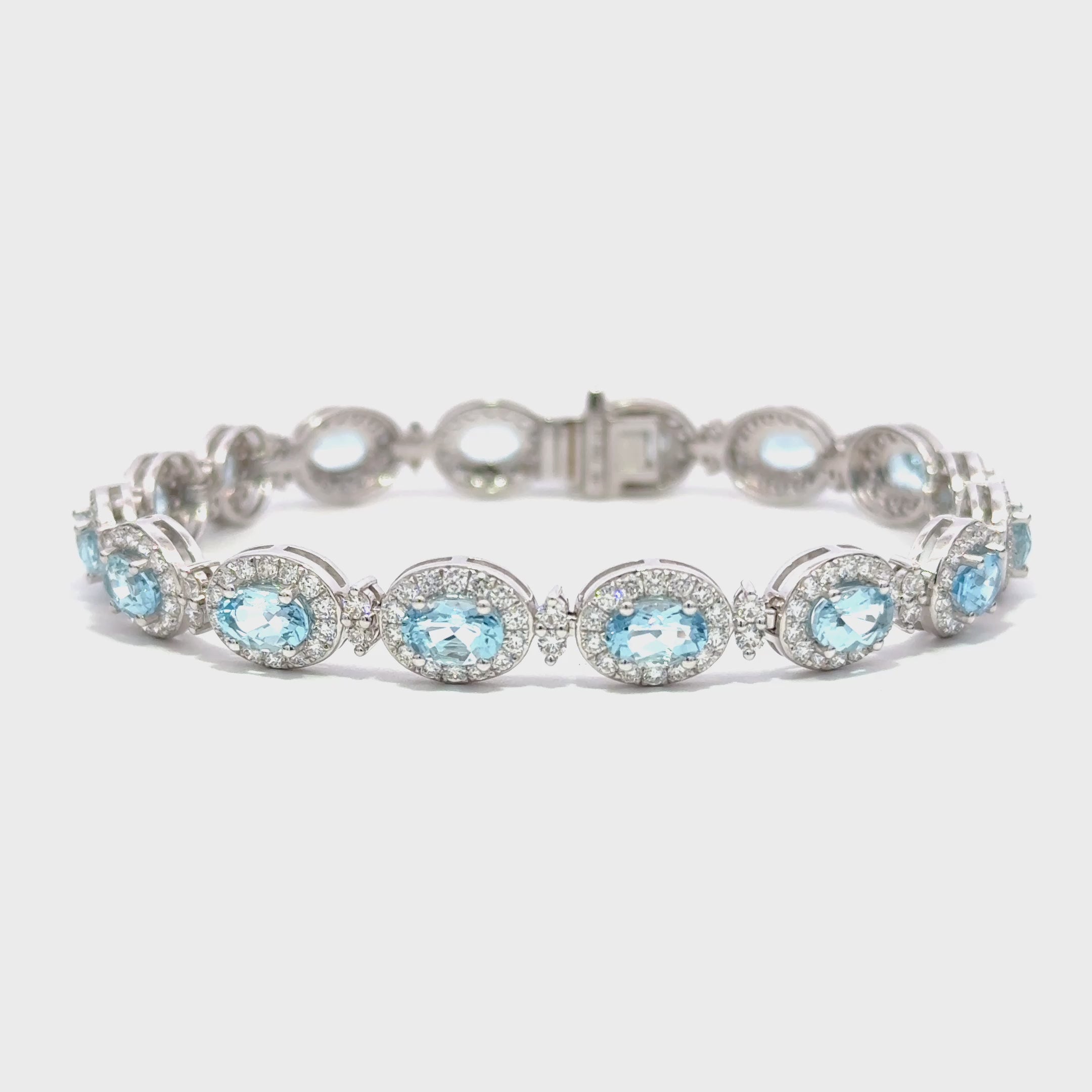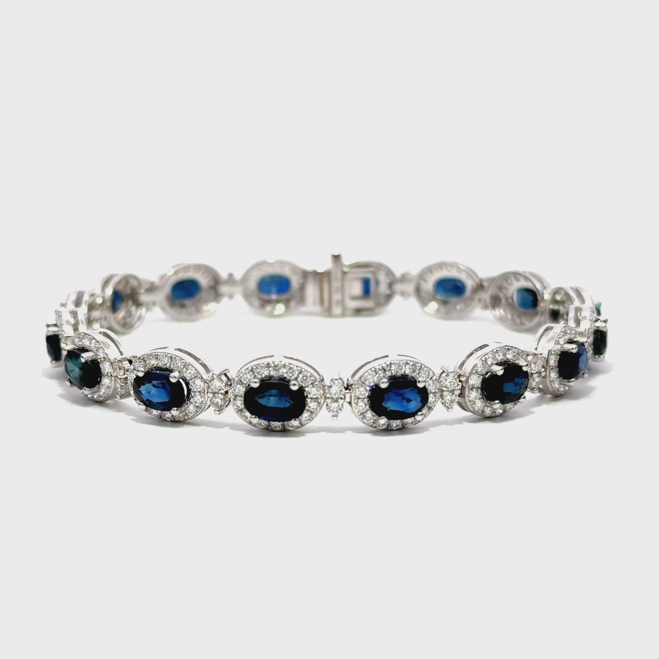 Oval Blue Sapphire & Diamond Halo Bracelet