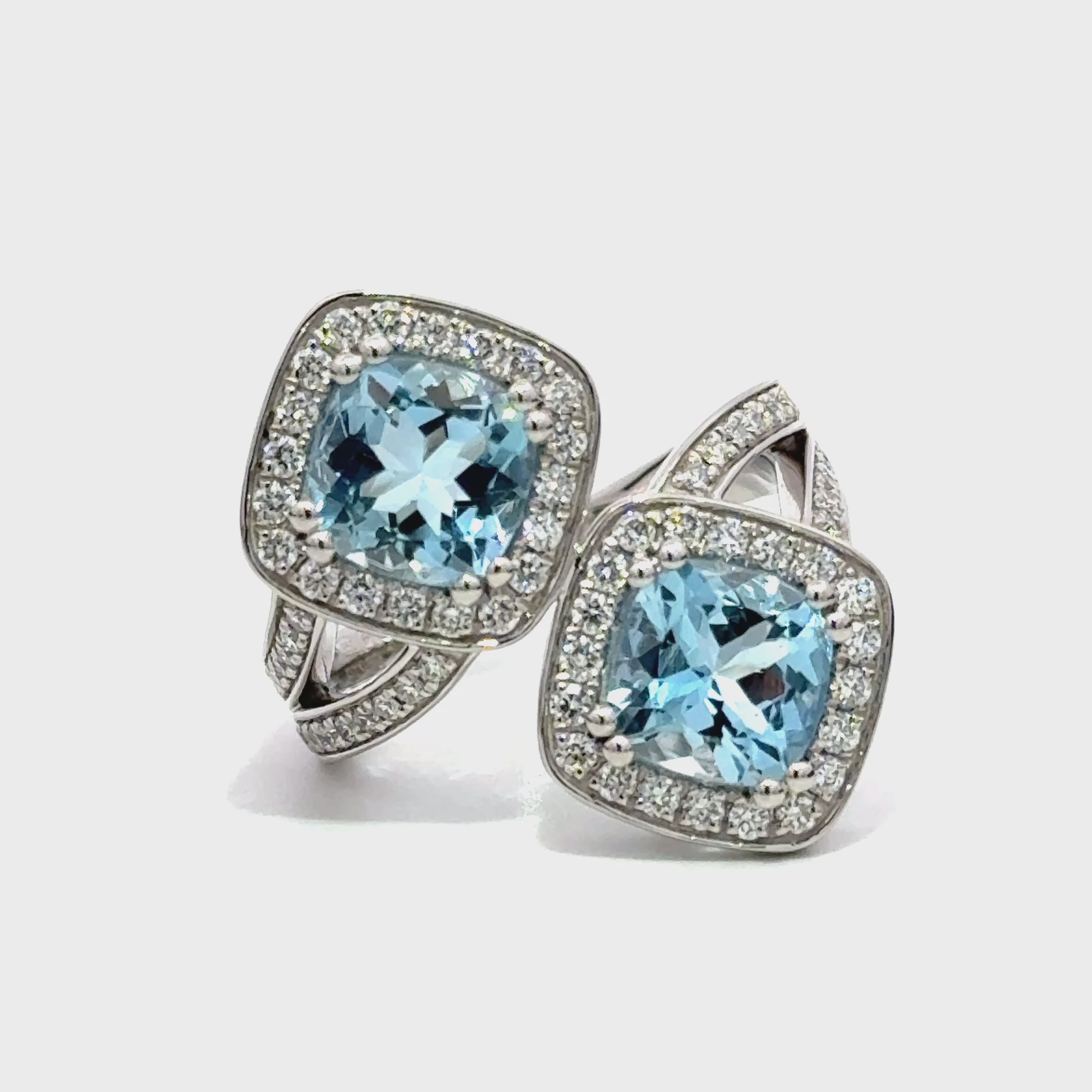 Aqua 2.77ct & Diamond 0.61ct Double Halo Crossover Ring in Platinum
