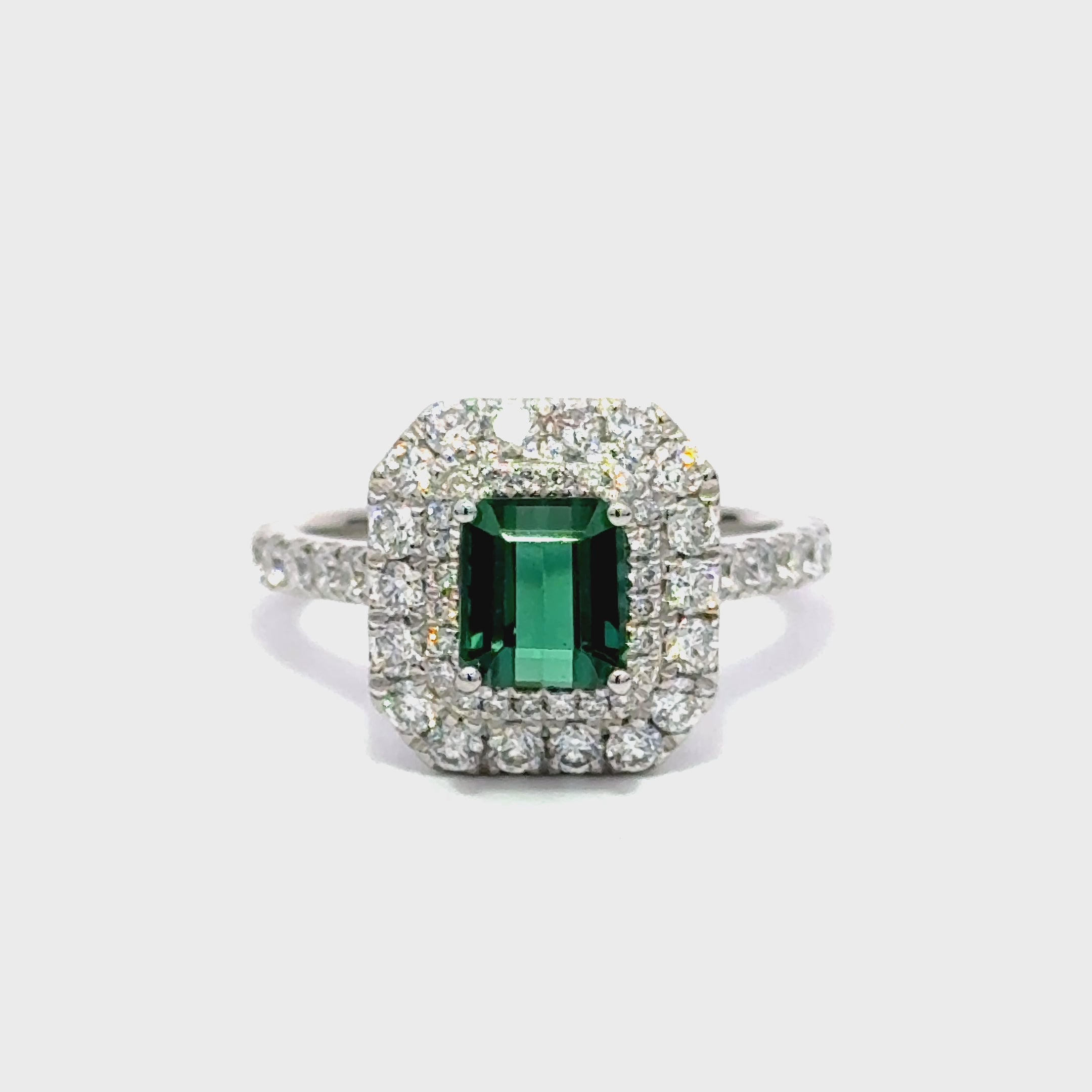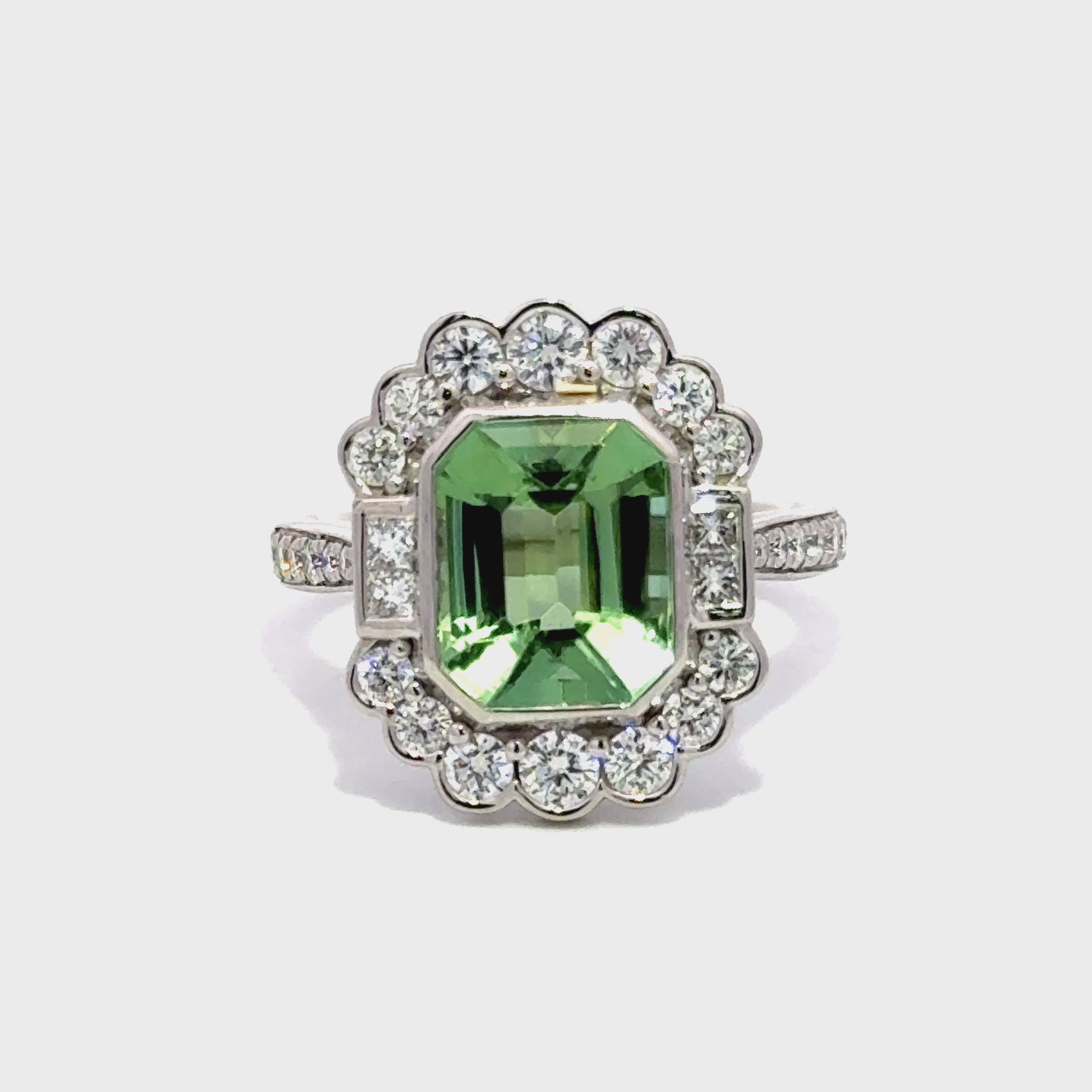 Mint Tourmaline 1.33ct & Diamond 0.99ct Cluster Ring in Platinum