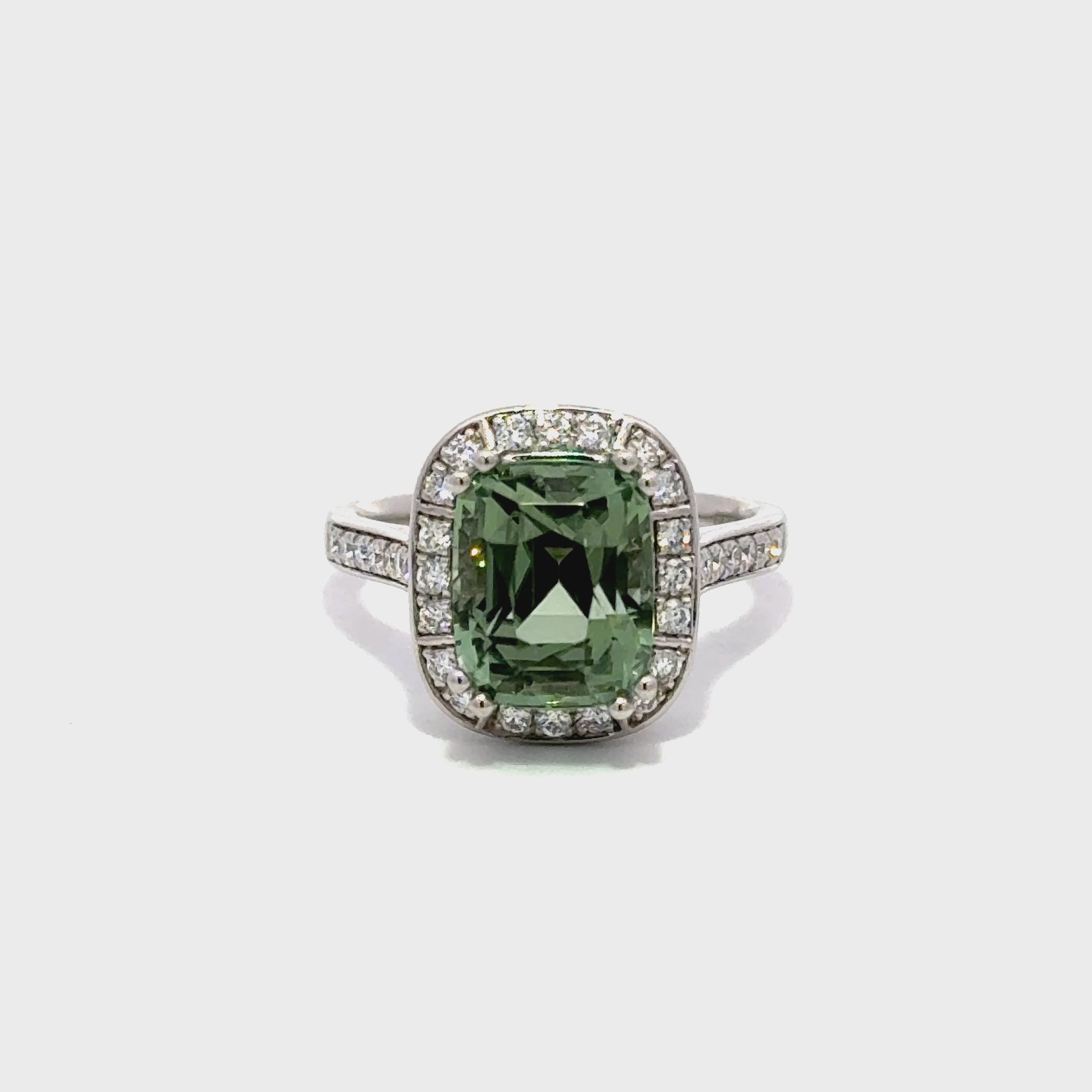 Mint Tourmaline 3.03ct & Diamond 0.98ct Cluster Ring in Platinum