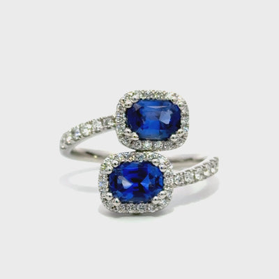 Blue Sapphires 2.00ct & Diamonds 0.39ct Double Halo Crossover Ring