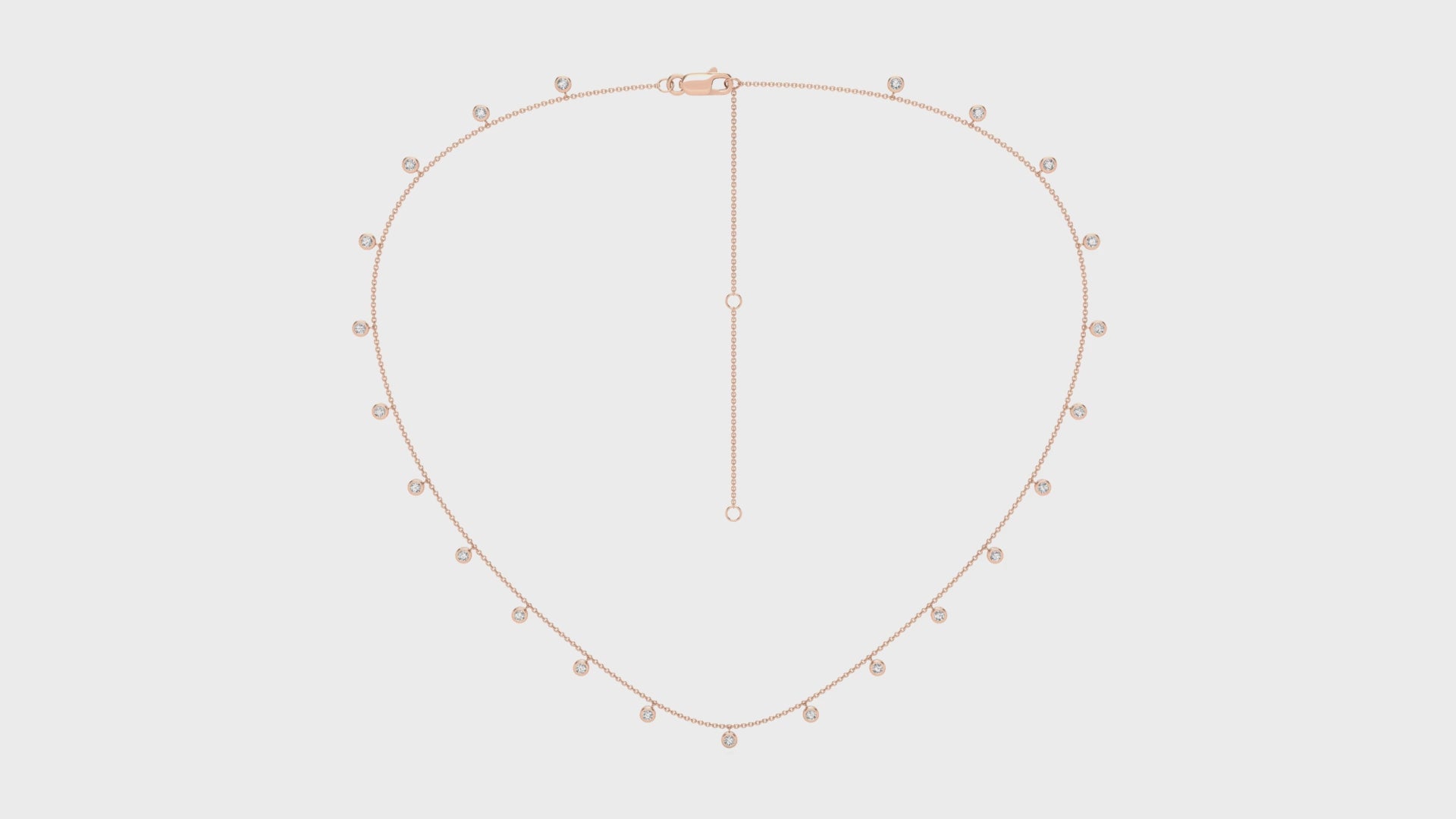 This elegant drop necklace features a series of bezel-set round diamonds delicately spaced along a fine gold chain. Crafted for effortless layering or worn alone for a subtle statement, it's the perfect everyday luxury piece.