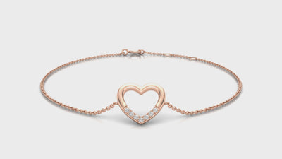 Timeless and romantic, this Diamond Heart Bracelet features a polished open heart motif, accented with micro-set round brilliant diamonds. The delicate chain and meaningful design make it a beautiful piece for everyday elegance or heartfelt gifting.