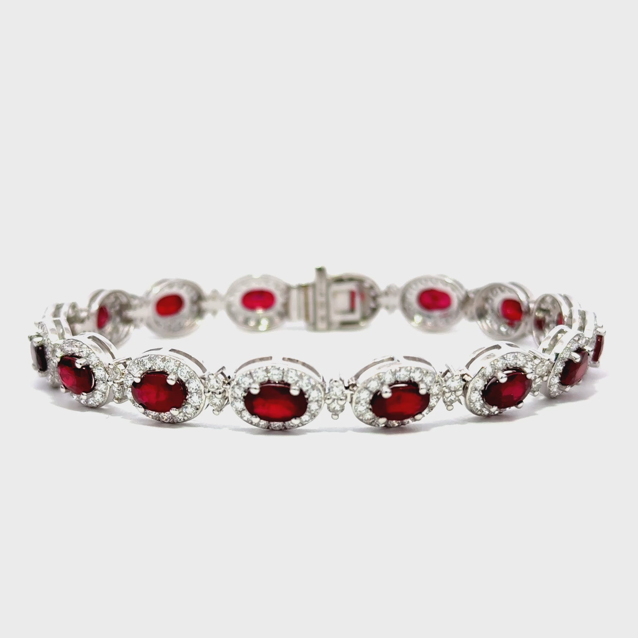 Oval Ruby & Diamond Halo Bracelet
