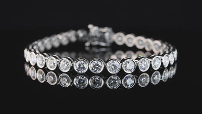 Celebrate streamlined elegance with our Rubover Diamond Tennis Bracelet. Each brilliant-cut diamond is set within a smooth rubover (bezel) setting, offering sleek security and uninterrupted sparkle.