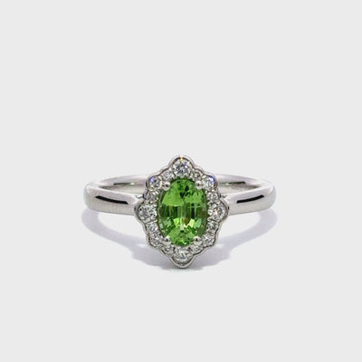 Tsavorite 0.68ct & Diamond 0.16ct Cluster Ring in Platinum